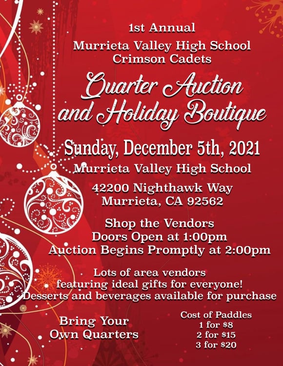 Sunday, December 5, 2021 @ 2 pm Quarter Auction and Holiday Boutique