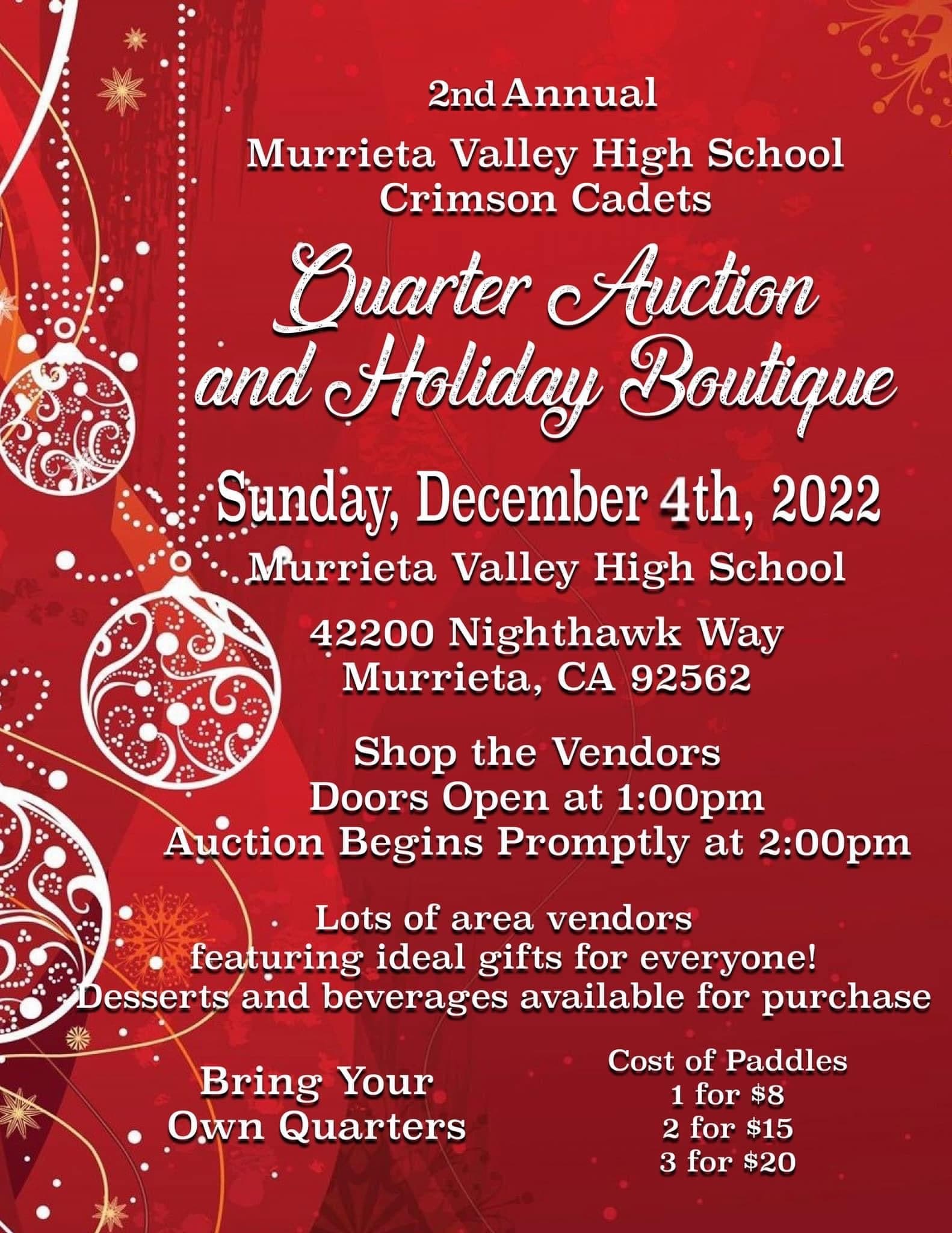 Fundraiser!! Quarter Auction – Sunday, December 4, 2022